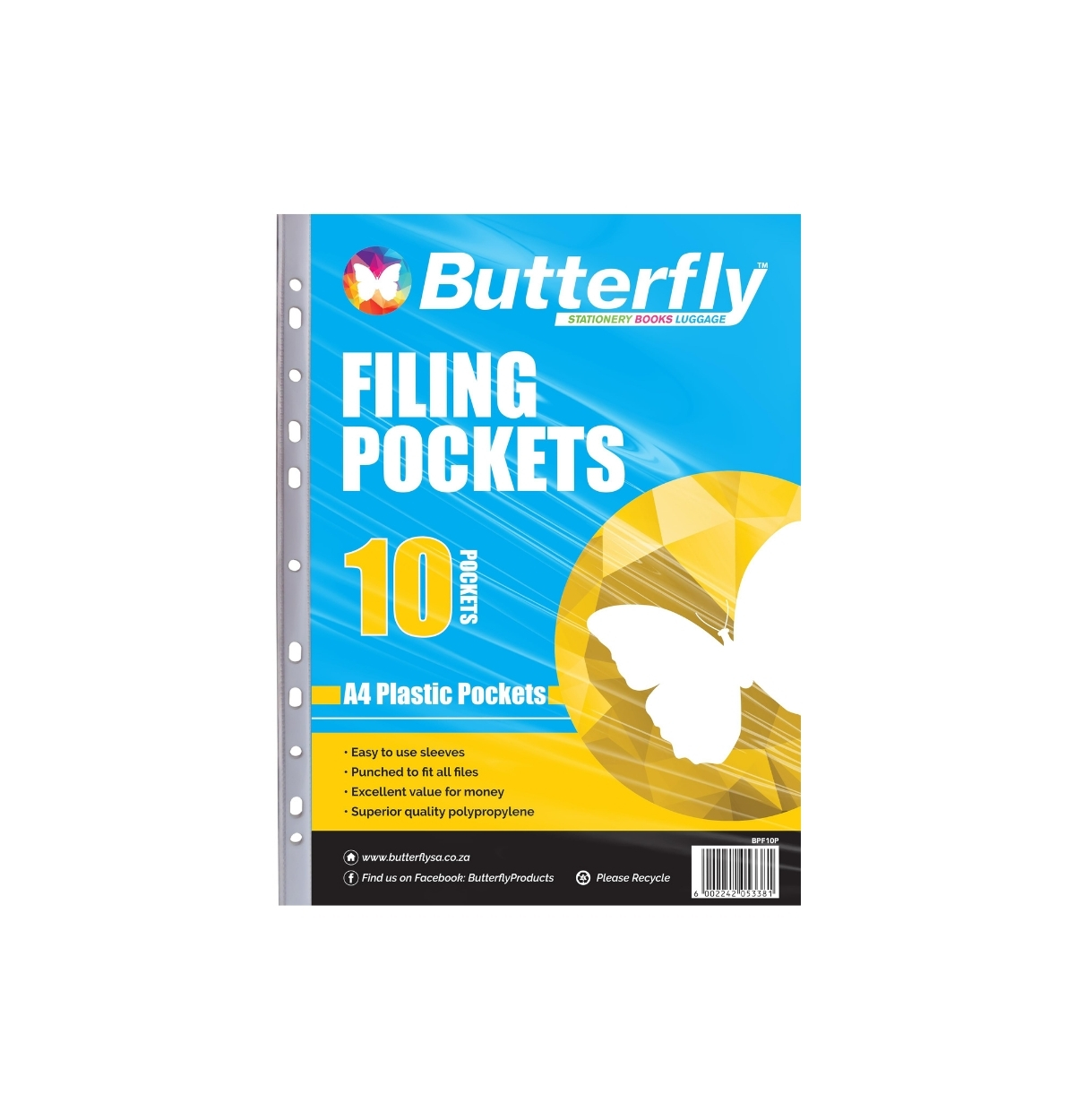 Butterfly A4 40µm 10 Plastic Filing Pockets are the perfect solution for keeping your documents organised, protected, and professionally presented. Designed to fit standard A4 paper, these high-quality plastic filing pockets provide reliable protection against dust, spills, creases, and everyday wear and tear. Whether you are organizing office paperwork, school assignments, or important personal documents, Butterfly filing pockets help you maintain a neat and efficient filing system.