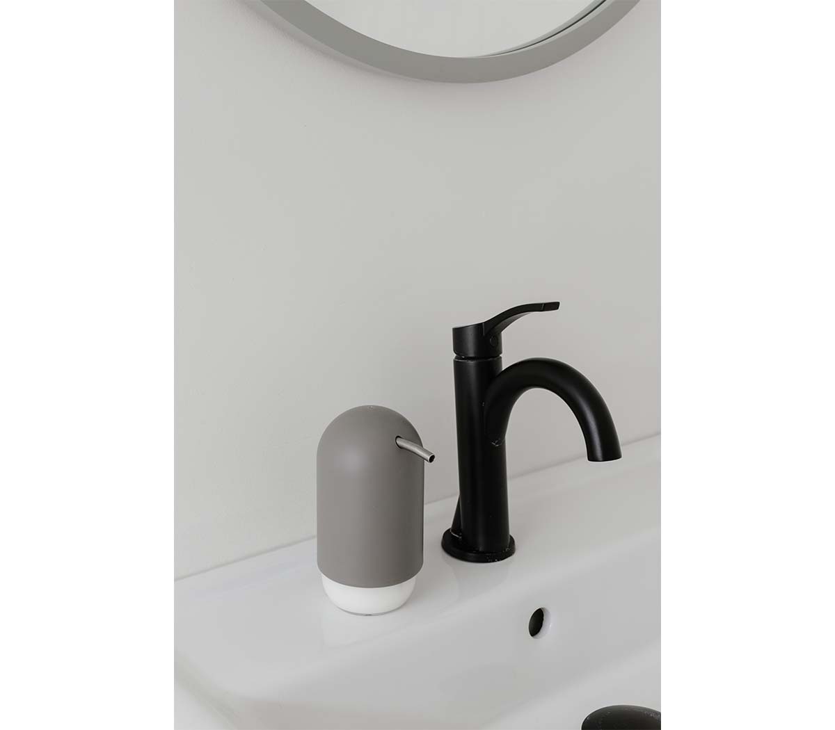The Touch Soap Dispenser is made of a matte, soft-touch moulded material, which is easy to clean, and highly durable. The finish is delicate, smooth to the touch, and pleasing to the eye. Its curved pump is a departure from the typical soap pump, fitting the curve of your hand and dispensing soap with ease. Easy to refill, simply twist off the clear container at the bottom of the dispenser to refill your soap. Its wide opening makes pouring soap inside easy and spill-free. It’s also easy to tell when soap levels are low thanks to the clear soap chamber at the bottom of the dispenser.
