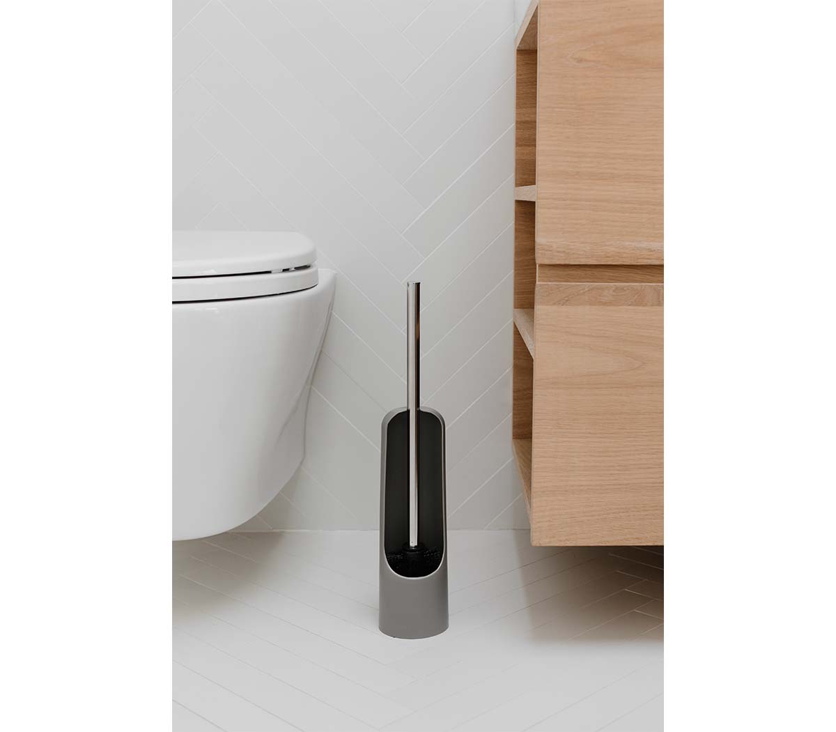 Thanks to its compact size and clean, curved lines that are pleasing to the eye, yet unobtrusive, the Touch Toilet Brush & Holder remains discreet while tucked away beside your toilet. It’s made of a matte, soft-touch moulded material, which is easy to clean, and highly durable. The finish is delicate and smooth to the touch, plus it looks good. Included with the holder is a sleek brush featuring a chrome handle.