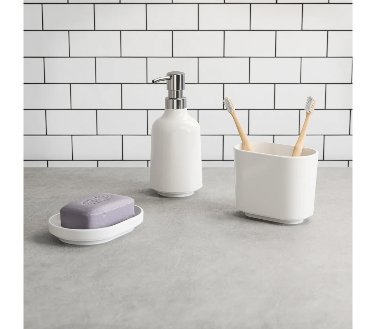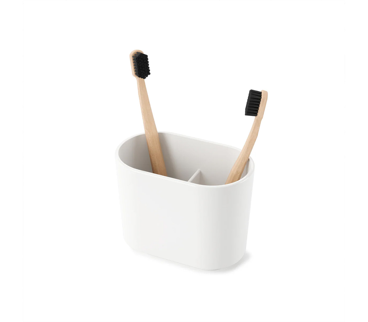 Step is made of the highly durable material melamine, meaning it is less likely to break in busy washrooms and kitchens. This modern and sleek toothbrush holder will hold your toothbrushes upright, ensuring they remain clean and dry after use. It measures 13 x 8 x 10 cm. Pair this toothbrush holder with other accessories from the Step Bathroom Collection for a more cohesive look.